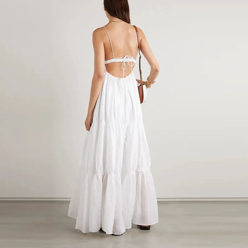Príležitostné dlhé vrstvené podrobnosti o ohláňacích šatách v krku v krku