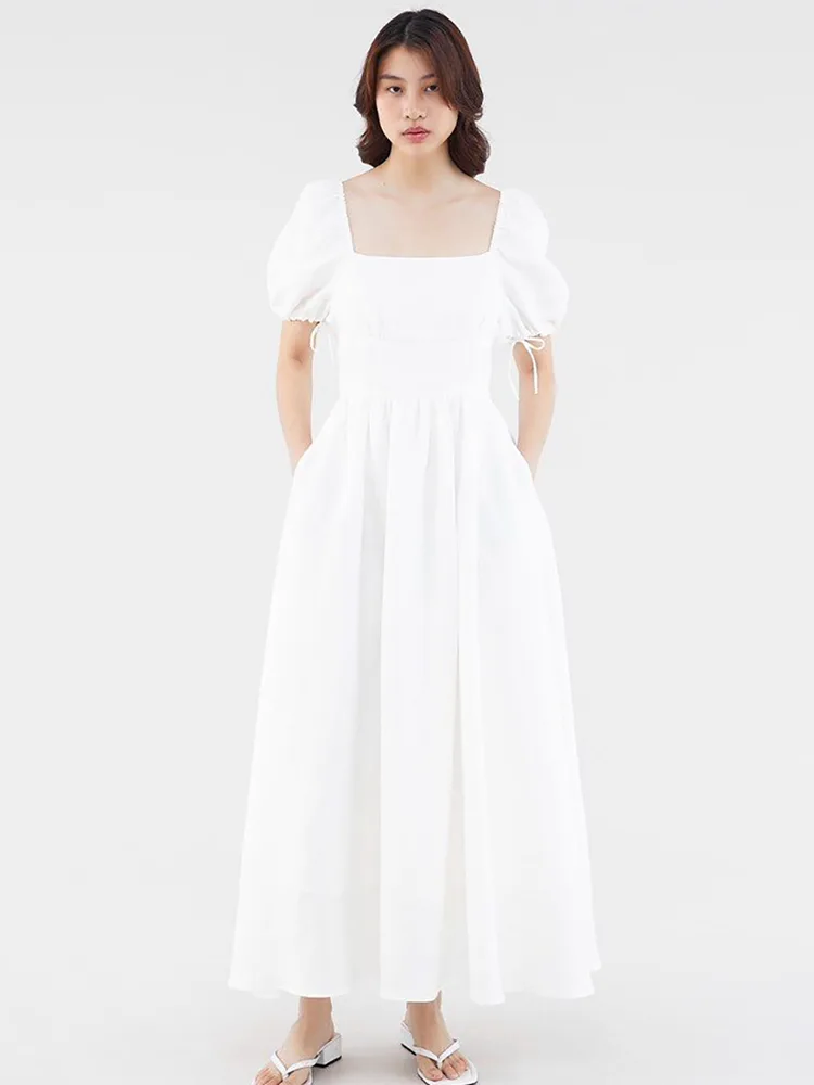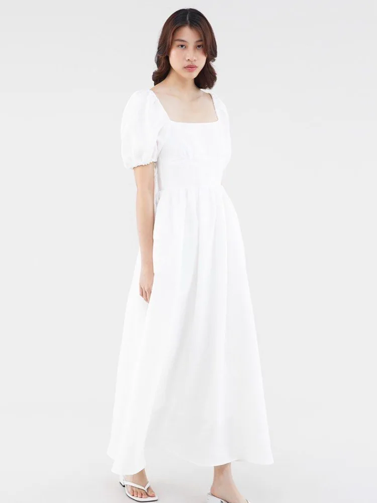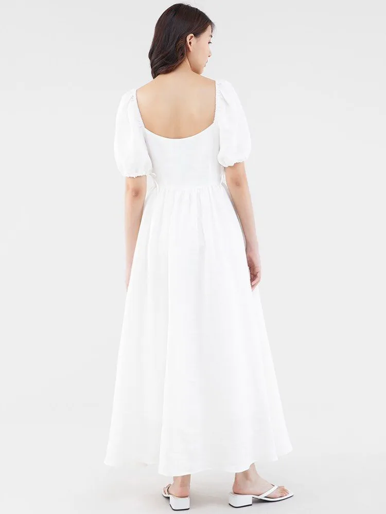 Bavlnené ľanové maxi šaty s krátkym rukávom Módne prvky