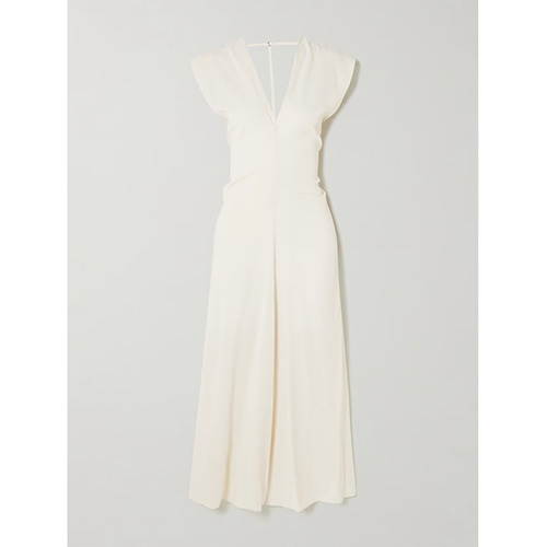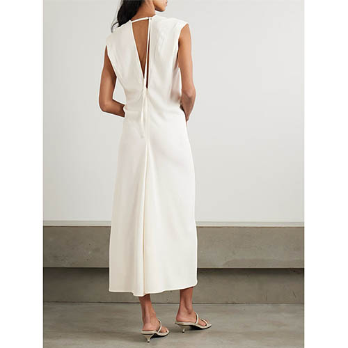 Hot Tags: Hlboké V midi šaty bez rukávov v slonovinovej farbe